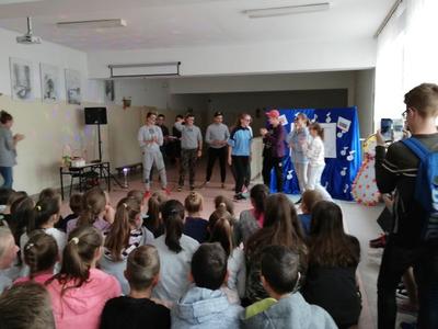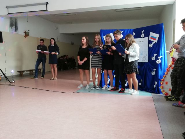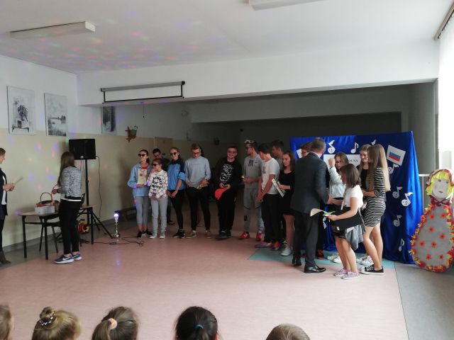 Uczniowie klas IV A, V, VIII i III gimnazjum zaprezentowali przygotowane utwory wokalne w języku angielskim i rosyjskim, którym towarzyszyły układy taneczne oraz efekty specjalne.