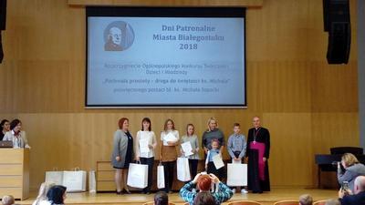 Maciej Wnorowski - uczeń klasy V naszej szkoły - został laureatem Ogólnopolskiego Konkursu Dzieci i Młodzieży "Pochwała prostoty - droga do świętości ks. Michała Sopoćki" - forma plastyczna w kategorii rodzinnej. Gala wręczenia nagród odbyła się 27 września 2018r. w Białymstoku w Centrum Wystawniczo - Konferencyjnym Archidiecezji Białostockiej. Maćkowi i jego Rodzicom serdecznie gratulujemy i życzymy dalszych sukcesów!