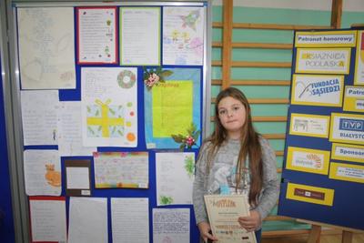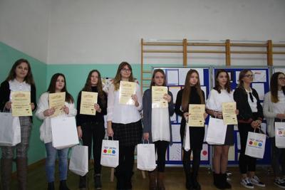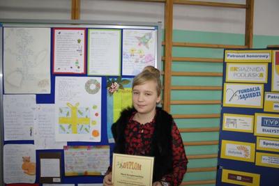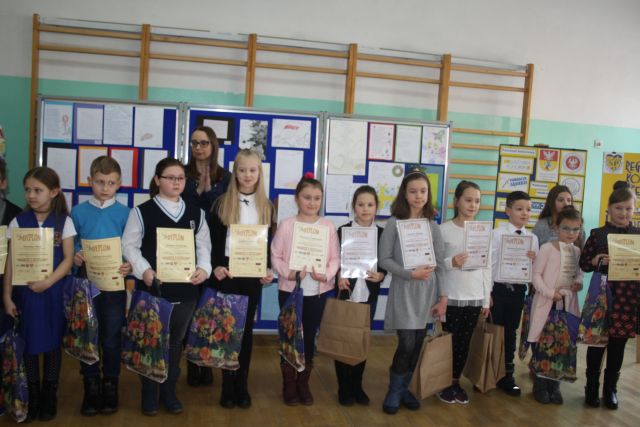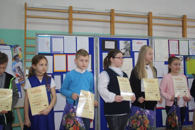 Amelia Kalinowska kl II, Olga Kropiewnicka kl II, Gabriel Kurzyna kl II, Szymon Wołosik kl II, Daria Dyszkiewicz kl IVb , Maria Kropiewnicka kl VIa, Patrycja Milewska kl VIII, Jarosław Roszkowski kl VIII.