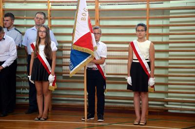 Wróciliśmy do szkoły. Początek roku szkolnego odbył się na sali gimnastycznej w obecności zaproszonych gości. Podczas spotkania podziękowania za dotychczasową pracę w roli wicedyrektor otrzymała pani Joanna Sikorska. Na nowym stanowisku oficjalnie powitaliśmy panią Grażynę Rzońca....