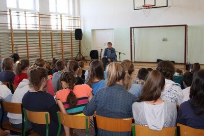 W dniu 17 września 2014r. uczniowie klas I-III gimnazjum w ramach profilaktyki uzależnień uczestniczyli w spotkaniu z aktorem filmowym i teatralnym - Panem Lechem Dyblikiem. Artysta opowiadał o swojej pracy aktorskiej oraz o uzależnieniu od alkoholu i walce z nałogiem. Opowieść przeplatał grą...