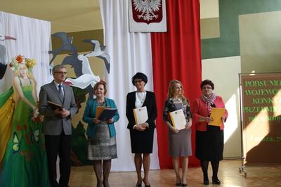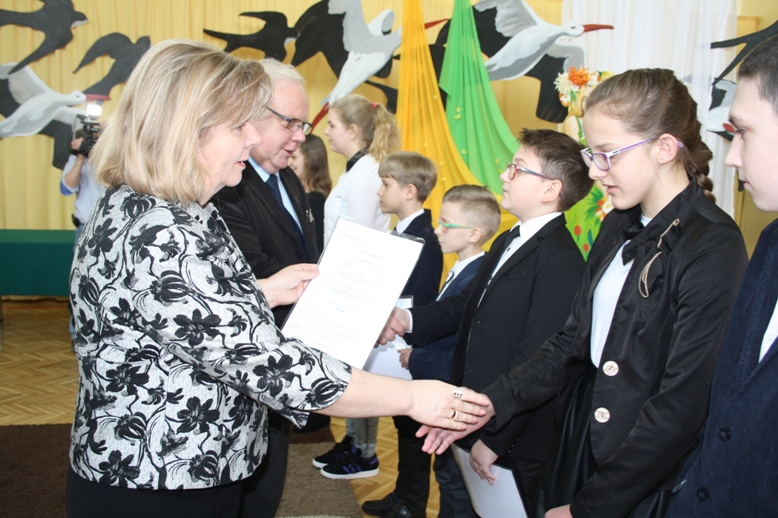Dyplomy wręczała Pani wicekurator mgr Wiesława Ćwiklińska i wicewojewoda Wojciech Dzierzgowski. Uczniowie klas piątych SP nr.5 przygotowali ciekawy repertuar wokalny, który wprowadził uczestników w miły wiosenny nastrój.