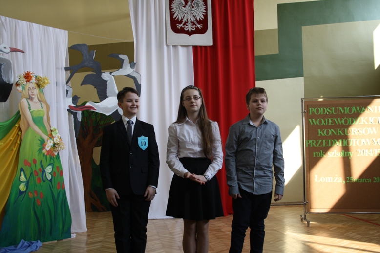 25 marca 2015 roku w Szkole Podstawowej nr 5 w Łomży odbyło się uroczyste wręczenie zaświadczeń uzyskania tytułu LAUREATA w Wojewódzkim Konkursie Przedmiotowym. W tym roku mieliśmy przyjemność uczestniczyć w tym przedsięwzięciu dzięki wynikowi Karoliny Kierzkowskiej.