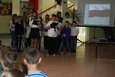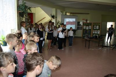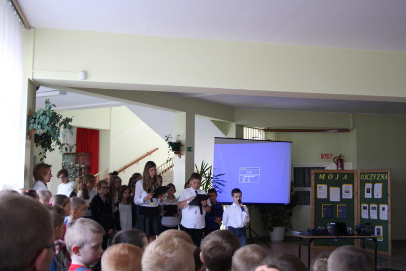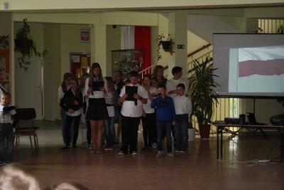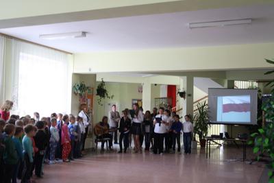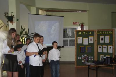 Dzieci zaprezentowały zebranym montaż słowno – muzyczny pod hasłem „Moja Ojczyzna”. Przybliżyły postać Księdza Piotra Skargi - naszego duchowego opiekuna oraz Św. Jana Pawła II - największego Polaka. Uczniowie recytowali wiersze, śpiewali pieśni patriotyczne. Występom towarzyszyła wystawa.