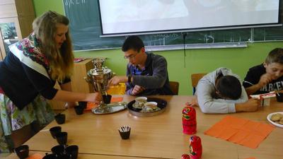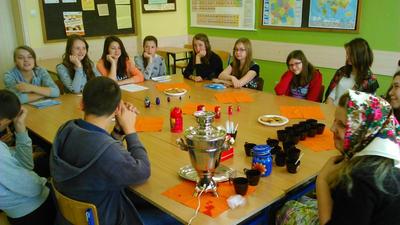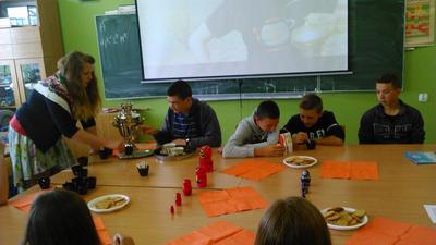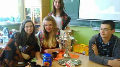 W dniu 10.06.2015 (środa) uczniowie klas II gimnazjum realizujący projekt gimnazjalny z języka rosyjskiego pt. „Dynastia carska Romanowów” zaprezentowali swoją pracę w postaci albumu i prezentacji multimedialnej na lekcji języka rosyjskiego. Dodatkowo przedstawiony został referat i film edukacyjny na temat historii samowara i parzenia herbaty. Wszystko to w miłej atmosferze, tak jak dawni carowie i caryce przy filiżance czarnej herbaty z samowara, która była serwowana przez klasowe Matrioszki.