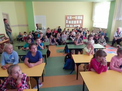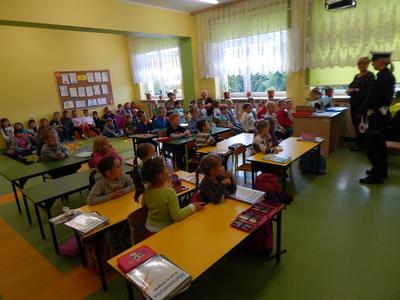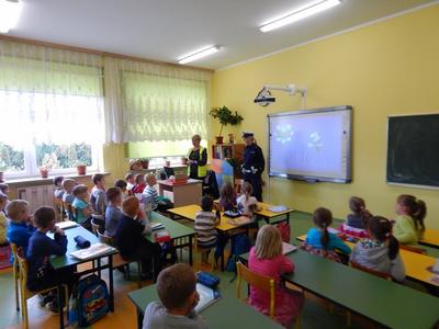 W dniu 9 września 2015r. odbyły się spotkania dzieci z punktu przedszkolnego oraz uczniów klas I-VI szkoły podstawowej z przedstawicielami Komendy Powiatowej Policji w Wys. Maz. w ramach programu "Bezpieczna droga do szkoły/domu 2015".