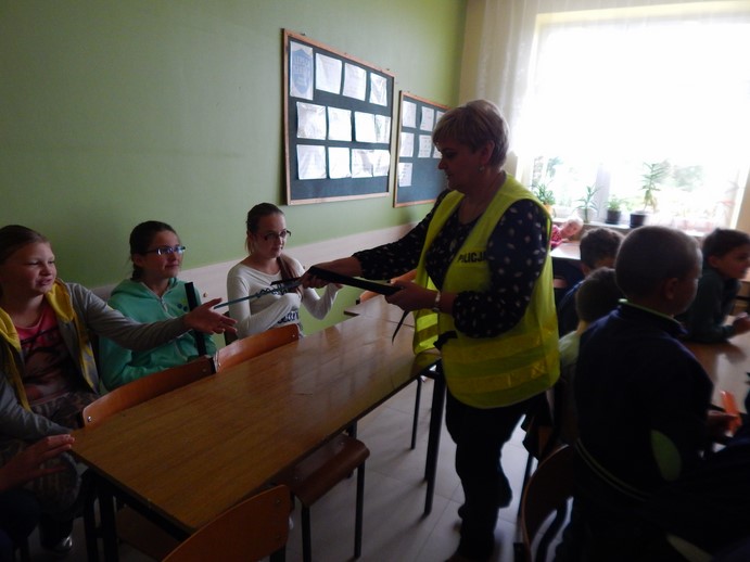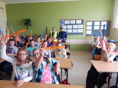 Podczas spotkań omówione zostały zasady bezpieczeństwa obowiązujące w różnych sytuacjach życiowych. Każde dziecko otrzymało również opaskę odblaskową na rękę do oznakowania osoby poruszającej się po drodze po zmierzchu.