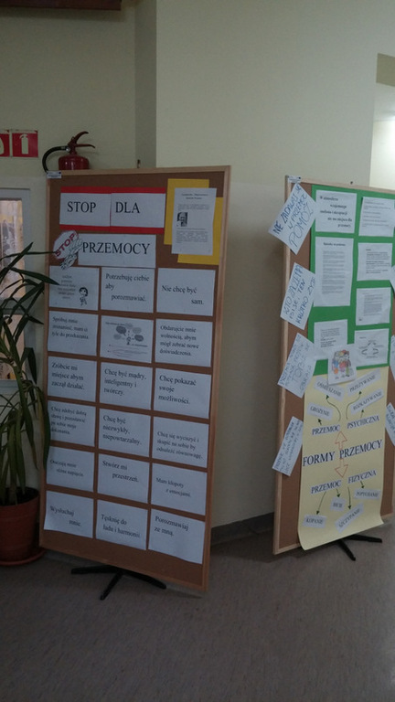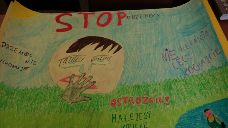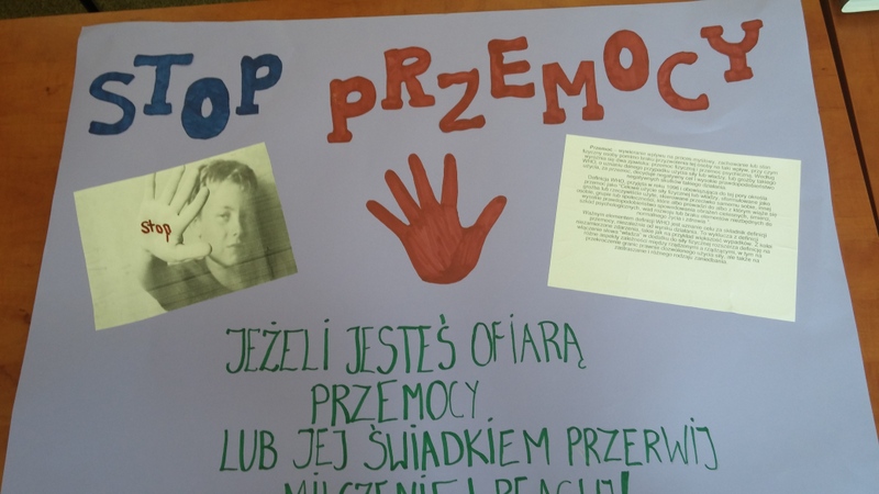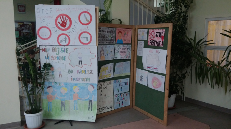 Od 28.09.2015 – 02.10.2015 w naszej szkole obchodziliśmy Tydzień Bez Przemocy. W tym czasie na godzinach z wychowawcą rozmawialiśmy z naszymi uczniami na temat przemocy w naszej szkole oraz właściwych postawach. W efekcie rozmów powstały plakaty pt. ”Stop przemocy”. Wszystkie dostarczone prace klas (IV, V, VI, IA, IB, IIIB) zostały umieszczone na wystawie a osobom zaangażowanym w troskę o bezpieczeństwo DZIĘKUJĘ.