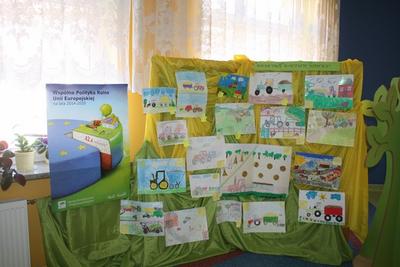 W związku z powyższym zobowiązani byliśmy wśród dzieci przedszkolnych przeprowadzić rodzinny konkurs plastyczny pod hasłem: „Rolnictwo w oczach dziecka”. Prace konkursowe miały zobrazować zmiany, jakie zachodzą na polskiej wsi dzięki działaniom prowadzonym przez ARiMR. W odpowiedzi na ogłoszony konkurs przygotowano 27 prac, z których 8 wyróżnionych wysłano do Centrali ARiMR w Warszawie tj.: