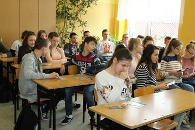 W dniu 26 kwietnia 2017r. uczniowie klas III gimnazjum spotkali się z przedstawicielami Zespołu Szkół Ogólnokształcących i Policealnych w Wysokiem Mazowieckiem i zapoznali z ofertą edukacyjną i zasadami rekrutacji do Liceum Ogólnokształcącego im. Króla Kazimierza Jagiellończyka na rok szkolny 2017/2018. Spotkanie zostało uatrakcyjnione poprzez prezentację filmu promocyjnego oraz minikoncert zespołu wokalno-instrumentalnego "Jagiellończyk Band", działającego przy tej szkole.