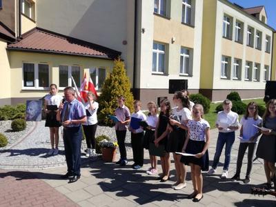 W akademii przed obeliskiem szkoły poświęconym naszemu patronowi ks. Piotrowi Skardze wzięła udział cała społeczność wraz z dyrekcją szkoły. Podczas uroczystości zaprezentowano również sylwetki patronów znad Wisły 2017 roku. Wszyscy, jak znamy z historii bardzo zasłużyli się dla dobra Ojczyzny. Myśli, sentencje, które towarzyszyły Skardze zawarte są w słowach wyrytych na kamieniu przed szkołą „Kto Ojczyźnie służy sam sobie służy”. Wartości głoszone przez Patrona Szkoły pomimo upływu czasu wciąż są aktualne i niezwykle potrzebne. Wszyscy zaś wymienieni w programie są patronami bieżącego roku zgodnie z uchwałą Sejmu Rzeczpospolitej Polskiej. Warto się takimi ludźmi chwalić być z nich dumnymi, a co najważniejsze naśladować Ich.