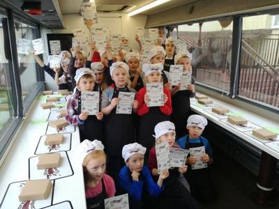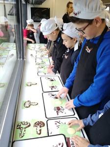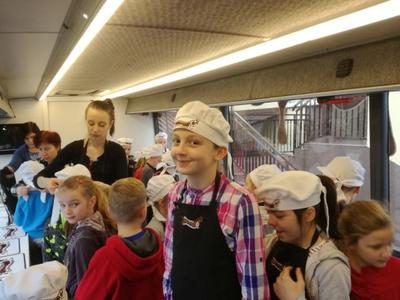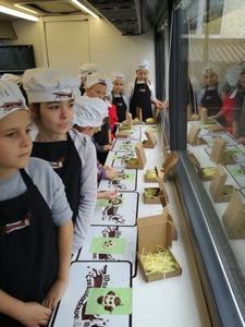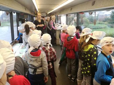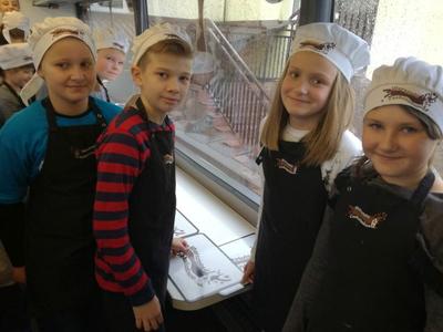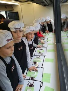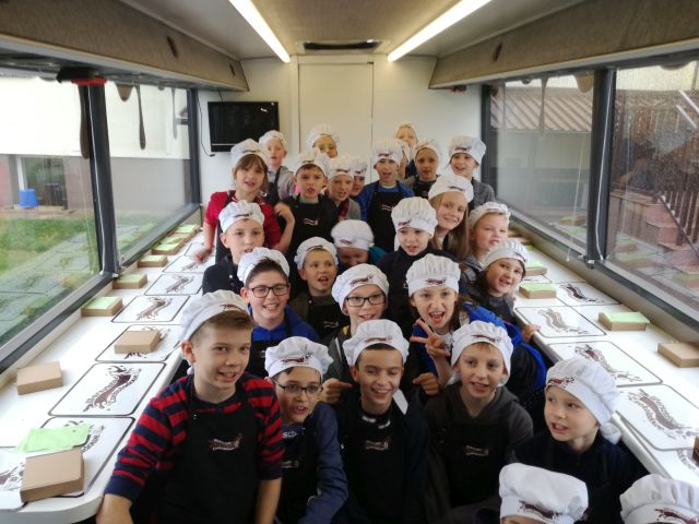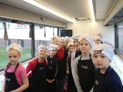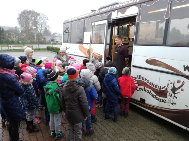 W dniu 13 listopada naszą szkołę odwiedził długo wyczekiwany przez uczniów "Czekoladowy autobus". Mimo niesprzyjającej pogody za oknem humory dopisywały, a to dzięki czekoladzie. Najpierw każdy uczestnik warsztatów założył czapeczkę oraz fartuszek, po czym wszyscy wysłuchali krótkiej historii czekolady.
