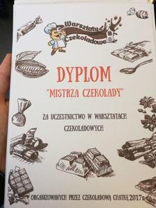 Na zakończenie zajęć uczestnicy warsztatów otrzymali dyplomy „Mistrza Czekolady” oraz kartonik, do którego mogli schować swoje skarby.