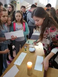 W dniu 30.11.2017 (czwartek) w naszej szkole odbyły się Andrzejki. Na przerwach uczniowie zamienili korytarz szkolny w „salę wróżb”. Każdy uczestnik andrzejkowych szaleństw z niecierpliwością przekłuwał papierowe serce, aby odczytać imię swojej sympatii, losował magiczne bileciki, na których widniały nazwy zawodów przyszłości, bądź szukał swojej szczęśliwej liczby. Katalog wróżb był obszerny i bogaty, a każdy pragnął wywróżyć sobie coś wyjątkowego. Wiele śmiechu i radości dostarczały uczniom przepowiednie. Wszyscy gorączkowo czekali na to, by dowiedzieć się, kto jako pierwszy z klasy zmieni stan cywilny, będzie bogaty i komu w życiu się powiedzie.