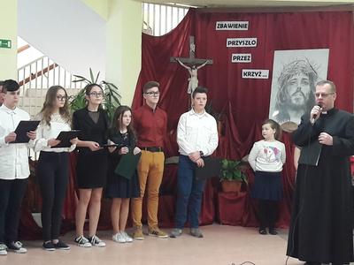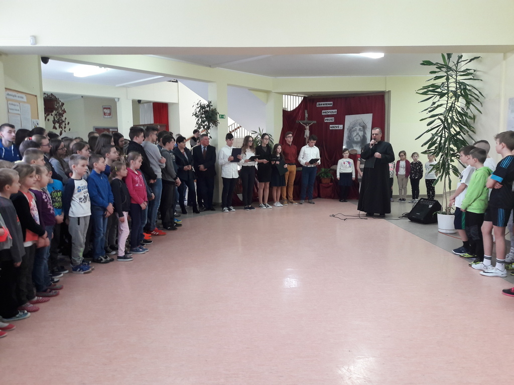 20 marca 2018 roku w naszej szkole społeczność uczniowska spotkała się na apelu, aby wspólnie rozważać mękę Pana Jezusa.