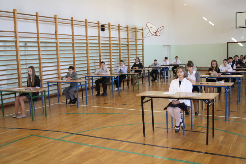 We wtorek rano na korytarzu szkolnym pojawiła się biało-czerowna wstęga z prośbą o zachowanie ciszy w pobliżu sali gimnastycznej. Jedynymi osobami kręcącymi się po tej części szkoły, elegancko ubranymi i lekko zdenerwowanymi, byli uczniowie klas szóstych, którzy równo o 9 mieli rozpocząć pisanie swojego pierwszego ważnego egzaminu - sprawdzianu szóstoklasisty. I równo o 9:00 przystąpiło do niego 31 osób z naszej szkoły. Mało kto opuszczał salę przed czasem - pierwsze reakcje mówiły, że sprawdzian nie był zbyt łatwy i wymagał czasu. Mamy nadzieję, że wyniki okażą się satysfakcjonujące!