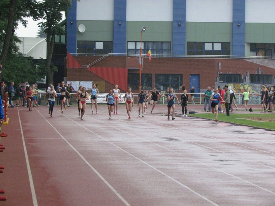 W strugach deszczu przyszło rywalizować najlepszym sportowcom z gimnazjów województwa podlaskiego w lekkoatletyce. W tak trudnych warunkach nie wszystkim udał się start. Ci bardziej doświadczeni w startach jakoś sobie radzili, mniej doświadczonym różnie to wychodziło.