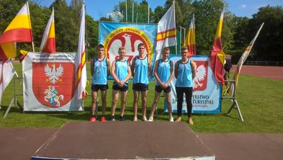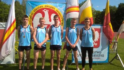 Sztafeta 4x100m w składzie: Piotr Dąbrowski, David Motyka kl.IIIA Gim, Dominik Kropiewnicki i Kamil Waldziński obaj kl.IIIB Gim - IX miejsce (48,79s).
