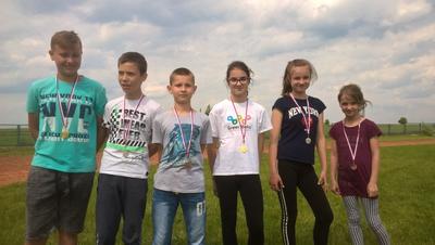 1. Korolewska Kamila (VIB) 10,41s2. Jaroszewska Aleksandra (VIB) 10,53s3. Pogorzelska Maria (V) 10,86s 1. Kłoskowski Piotr (VIA) 9,25s2. Kurzyna Bartłomiej (VIB) 9,45s 3. Jabłonowski Michał (VIA) 10,08s 200m1. Korolewska Magda (VIB) 34,69s 2. Kamińska Katarzyna (VIA) 37,14s3. Mężyńska Paulina (IVB) 38,82s 1. Zaleski Konrad (V) 34,05s 2. Jaworowski Paweł (VIB) 35,01s3. Zaleski Patryk (IVA) 36,70s 600m1. Śleszyńska Kinga (VIB) 2:22,83s2. Zaleska Paulina (VIB) 2:28,71s3. Kurzyna Emilia (VIA) 2:34,16s 1000m1. Wnorowski Maciej (V) 4:00,21s2. Soszyński Fabian (V) 4:04,15s 3. Szlaga Paweł (IVB) 4:06,92s skok w dal1. Korolewska Magda (VIB) 3,60m 2. Jaroszewska Aleksandra (VIB) 3,52m3. Kamińska Katarzyna (VIA) 3,46m 1. Kurzyna Bartłomiej (VIB) 4,16m2. Wnorowski Maciej (V) 3,83m3. Kłoskowski Piotr (VIA) 3,77m pchnięcie kulą1. Tatarczuk Gabriela (V) 6,10m2. Waldzińska Justyna (VIA) 5,67m3. Zaleska Paulina (VIB) 5,65m 1. Zaleski Konrad (V) 6,80m 2. Jaworowski Paweł (VIB) 5,76m3. Jabłonowski Michał (VIA) 5,73m 4x60m1. Klasa VIB Korolewska Magda, Śleszyńska Kinga, Korolewska Kamila, Jaroszewska Aleksandra. 40,85s 2. Klasa V Pogorzelska Maria, Dębnicka Nikola, Zajkowska Amelia, Kobylińska Julia. 42,80s 3. Klasa VIA Waldzińska Justyna, Kurzyna Emilia, Makowska Martyna, Kamińska Katarzyna. 45,86s 1. Klasa V Rzońca Michał, Konopka Mateusz, Zaleski Konrad, Wnorowski Maciej. 41,91s 2. Klasa IVA Zaleski Patryk, Jabłonowski Mateusz, Maleszewski Dominik, Czajkowski Oskar. 42,63s 3. Klasa IVB Szlaga Paweł, Wnorowski Michał, Kłoskowski Kamil, Wądołowski Jakub. 45,83s Drużynowo najlepsze okazały się dziewczęta z kl.VIB gromadząc 71 pkt. i chłopcy z kl.V - 67 pkt. J.M.