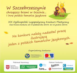 Ogólnopolski Logopedyczny Konkurs Plastyczny z „W Szczebrzeszynie chrząszcz brzmi w trzcinie…. I inne polskie łamańce językowe” Na konkurs należy nadesłać pracę ilustrującą jeden z polskich łamańców językowych. Format pracy: A4 T